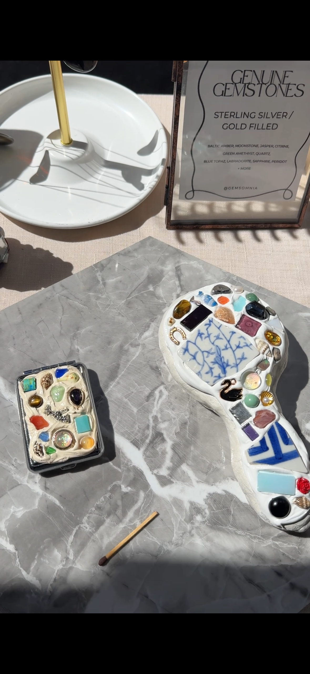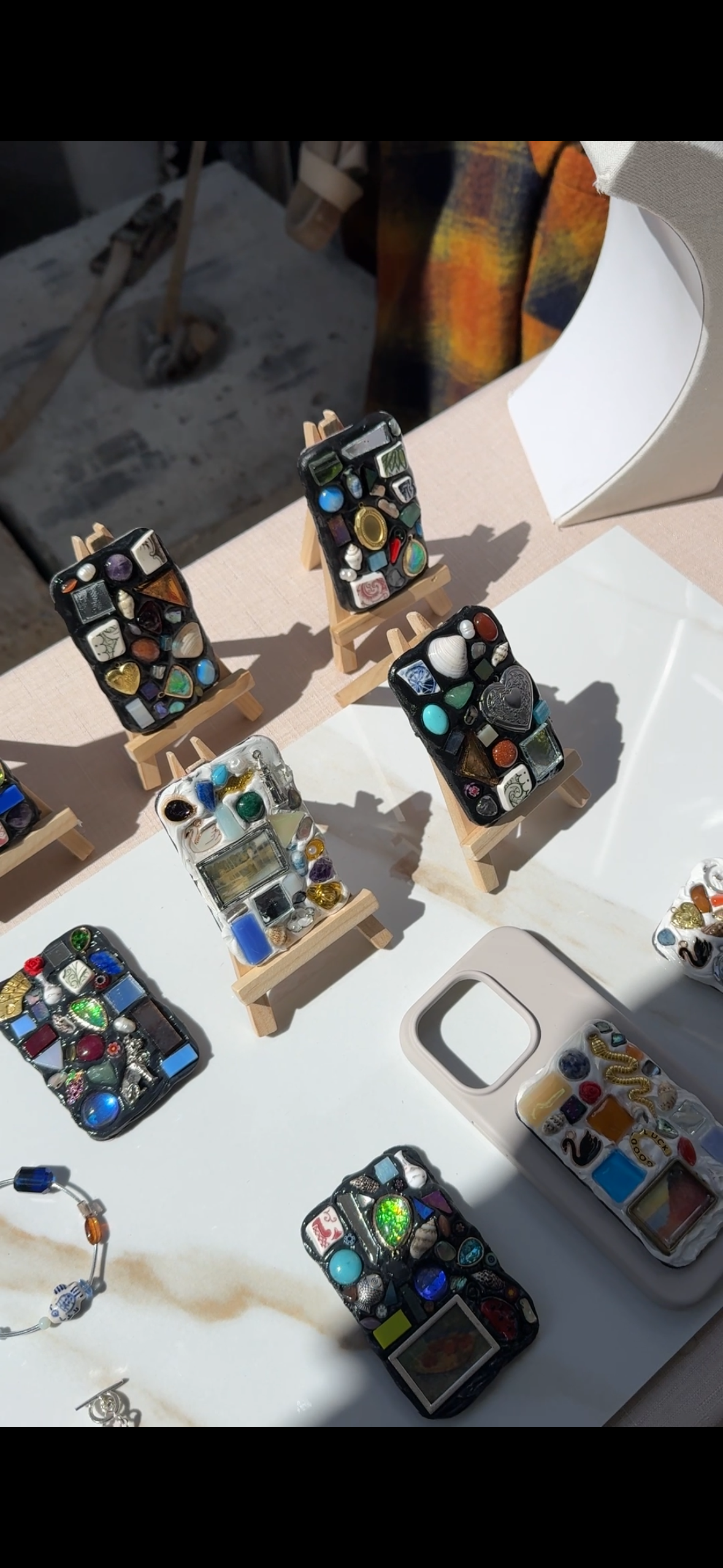 custom, mosaic gem phone case (nontoxic decoden) off-white